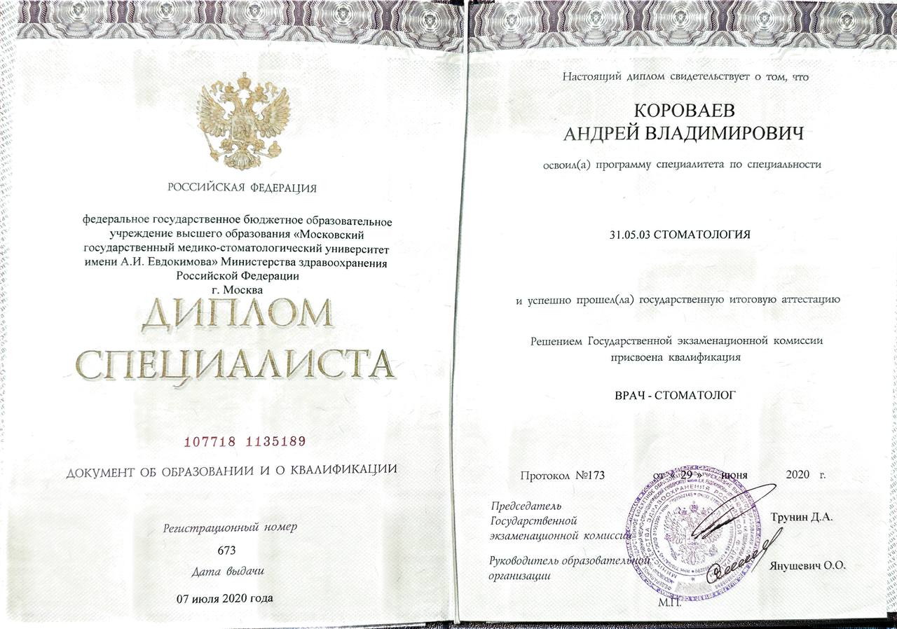 ● 2020 — Московский государственный медико-стоматологический университет имени А. И. Евдокимова, МГМСУ;